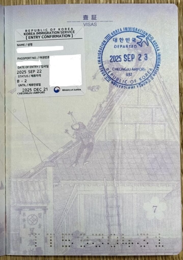 韓国では入国スタンプが廃止されていて、スタンプをお願いしてもスタンプではなくシールが張られます。パスポートに何も記録が残らない国がある中シールはもらえるのでパスポートに記録は残りますが、シールだと味気なく思います。